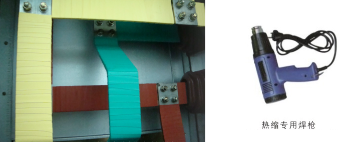 将复合绝缘热缩带1/2搭接缠绕,用加热枪从一端向另一端均匀烘烤,至收缩热溶胶叠层渗出时为止